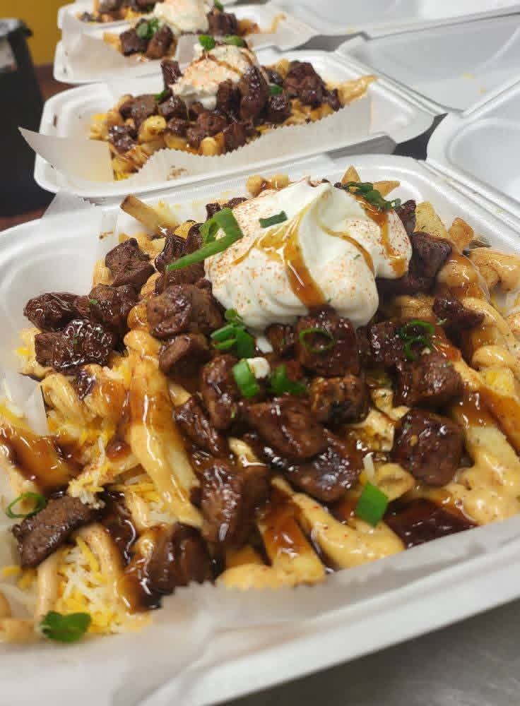 Fresh fries, topped with shredded cheese, protein, teriyaki, buddha sauce and sour cream.