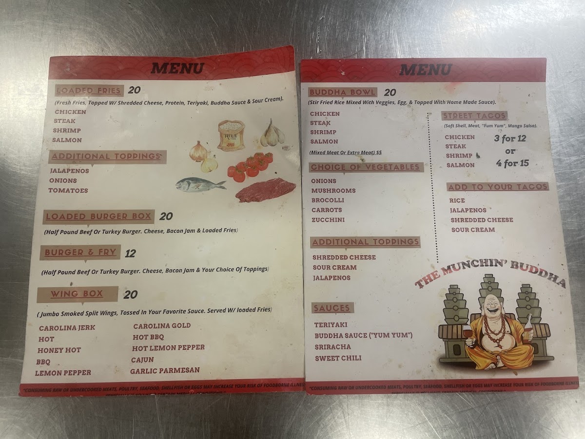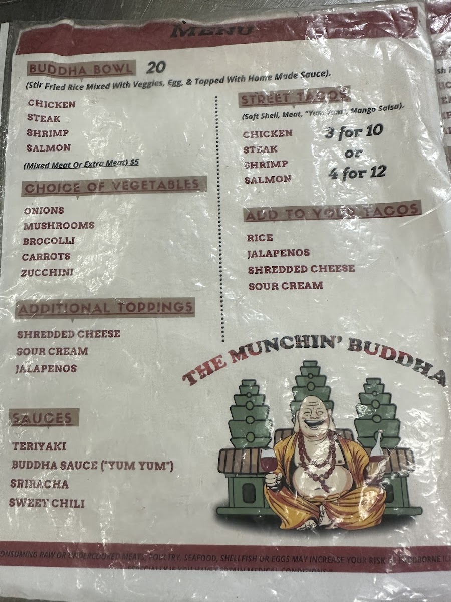 What stands out most about The Munchin’ Buddha Menu is how it takes classic comfort food and infuses it with personality and balance. Each dish feels crafted with attention to flavor harmony, portion satisfaction, and visual appeal. Whether you’re digging into a hibachi-inspired bowl, biting into a taco bursting with flavor, or sharing a pile of loaded fries with friends, the menu delivers consistent quality and a sense of joy in every dish. It’s food that satisfies cravings without pretense, served with warmth and a touch of creativity that keeps you coming back. The Munchin’ Buddha truly lives up to its name - it’s a place to relax, indulge, and find happiness in every flavorful bite.